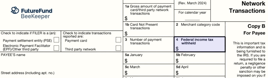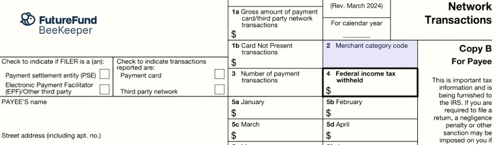 In other words: if you use FutureFund to raise money for your school, they'll file Form 1099-K and send you a copy.